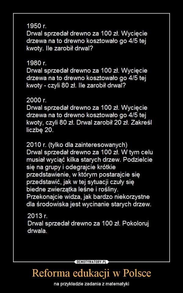 I ci , którzy nas usiłowali formatować w duchu demokracji socjalistycznej i internacjonalizmu ,albo ich dzieci, formatują nasze dzieci w duchu europejskości.Ale w naukach przyrodniczych sytuacja była lepsza. Teraz równamy w dół.Czcionka w zadaniach (ilustracja)jest trochę za mała. Jutro je puszczę powiększone. Przysłała mi je wnuczka z podpisem “babciu, przeczytaj koniecznie”:)