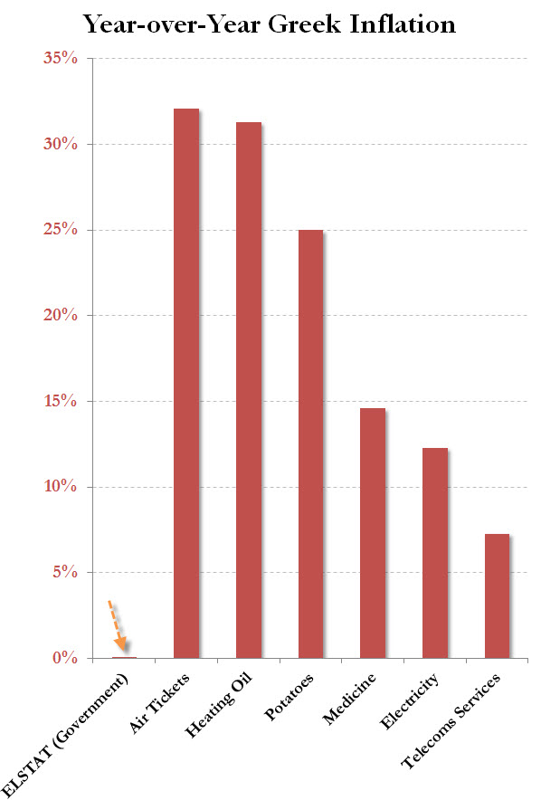 Otóż w tych dniach grecki urząd statystyczny (ELSTAT) podał dane na temat inflacji w Grecji, która ma wynosić tylko + 0.1 % i być najniższa od 45 lat .