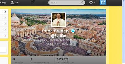 Tutaj jest adres papieskiego profilu w języku polskim: