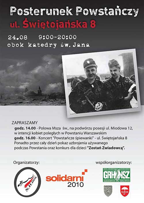 Posterunek będzie stał w godzinach 9.00 – 20.00 na Starym Mieście w Warszawie na ul.Świętokrzyskiej 8 naprzeciwko Archikatedry św. Jana. W ramach tego wydarzenia o godz.14.00 odbędzie się przemarsz grupy z Posterunku na ul. Miodową 12, gdzie na podwórku posesji – zwyczajem z Powstania Warszawskiego – odprawiona zostanie Msza św. polowa w intencji kobiet poległych w Powstaniu Warszawskim..