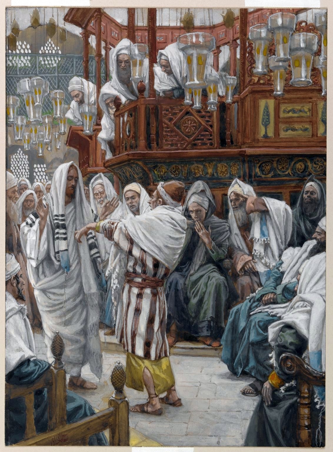 Gdy Jezus wyrzucał złego ducha, niektórzy z tłumu rzekli: Przez Belzebuba, władcę złych duchów, wyrzuca złe duchy. Inni zaś, chcąc Go wystawić na próbę, domagali się od Niego znaku z nieba. On jednak, znając ich myśli, rzekł do nich: Każde królestwo wewnętrznie skłócone pustoszeje i dom na dom się wali. Jeśli więc i szatan z sobą jest skłócony, jakże się ostoi jego królestwo? Mówicie bowiem, że Ja przez Belzebuba wyrzucam złe duchy. Lecz jeśli Ja przez Belzebuba wyrzucam złe duchy, to przez kogo je wyrzucają wasi synowie? Dlatego oni będą waszymi sędziami. A jeśli Ja palcem Bożym wyrzucam złe duchy, to istotnie przyszło już do was królestwo Boże. Gdy mocarz uzbrojony strzeże swego dworu, bezpieczne jest jego mienie. Lecz gdy mocniejszy od niego nadejdzie i pokona go, zabierze całą broń jego, na której polegał, i łupy jego rozda. Kto nie jest ze Mną, jest przeciwko Mnie; a kto nie zbiera ze Mną, rozprasza. Gdy duch nieczysty opuści człowieka, błąka się po miejscach bezwodnych, szukając spoczynku. A gdy go nie znajduje, mówi: Wrócę do swego domu, skąd wyszedłem. Przychodzi i zastaje go wymiecionym i przyozdobionym. Wtedy idzie i bierze siedem innych duchów złośliwszych niż on sam; wchodzą i mieszkają tam. I stan późniejszy owego człowieka staje się gorszy niż poprzedni.