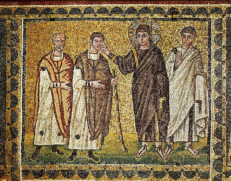 Gdy Jezus przychodził, szli za Nim dwaj niewidomi którzy wołali głośno: Ulituj się nad nami, Synu Dawida! Gdy wszedł do domu, niewidomi przystąpili do Niego, a Jezus ich zapytał: Wierzycie, że mogę to uczynić? Oni odpowiedzieli Mu: Tak, Panie! Wtedy dotknął ich oczu, mówiąc: Według wiary waszej niech wam się stanie! I otworzyły się ich oczy, a Jezus surowo im przykazał: Uważajcie, niech się nikt o tym nie dowie! Oni jednak, skoro tylko wyszli, roznieśli wieść o Nim po całej tamtejszej okolicy.