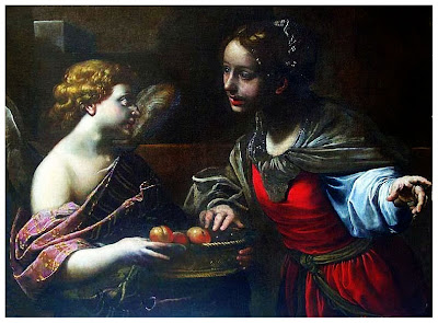 Teofil, śmiejąc się, opowiadał właśnie towarzyszom, że prowadzona na śmierć chrześcijanka obiecała przysłać mu z raju róż i jabłek, gdy wtem stanął przed nim prześliczny młodzian i podał mu je na białej chusteczce, mówiąc: “Dorota przysyła, co ci obiecała”. Po tych słowach zniknął. Serce Teofila oświecił nagle promień wiary. “Przyjaciele! – zawołał po chwili – prawdziwie Chrystus jest Bogiem, gdyż te kwiaty i owoce rzeczywiście z Nieba pochodzą!” Kiedy go chciano odwieść od tego przekonania, rzekł: “Mamy obecnie ostrą zimę i w całym kraju nie ma zielonej gałązki, a zresztą jakim sposobem wszedł tutaj ten chłopczyna i jak zniknął nagle? Był to cudowny posłaniec bohaterskiej dziewicy, którą nierozsądnie wyśmiewałem. Wierzę mocno, że Chrystus jest Bogiem i błogosławiony, który weń wierzy!”