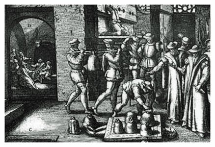 Potem Józef z Arymatei, który był uczniem Jezusa, lecz ukrytym z obawy przed Żydami, poprosił Piłata, aby mógł zabrać ciało Jezusa. A Piłat zezwolił. Poszedł więc i zabrał Jego ciało. Przybył również i Nikodem, ten, który po raz pierwszy przyszedł do Jezusa w nocy i przyniósł około stu funtów mieszaniny mirry i aloesu. Zabrali więc ciało Jezusa i obwiązali je w płótna razem z wonnościami, stosownie do żydowskiego sposobu grzebania. A na miejscu, gdzie Go ukrzyżowano, był ogród, w ogrodzie zaś nowy grób, w którym jeszcze nie złożono nikogo. Tam to więc ze względu na żydowski dzień Przygotowania złożono Jezusa, bo grób znajdował się w pobliżu.