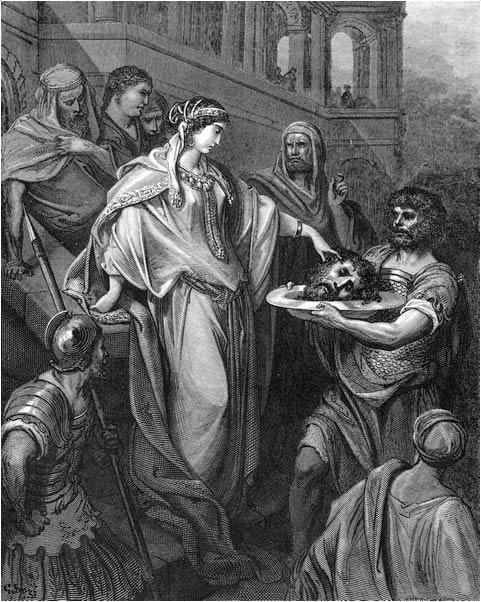 Otóż chwila sposobna nadeszła, kiedy Herod w dzień swoich urodzin wyprawił ucztę swym dostojnikom, dowódcom wojskowym i osobom znakomitym w Galilei. Gdy córka tej Herodiady weszła i tańczyła, spodobała się Herodowi i współbiesiadnikom. Król rzekł do dziewczęcia: „Proś mię, o co chcesz, a dam ci”. Nawet jej przysiągł: „Dam ci, o co tylko poprosisz, nawet połowę mojego królestwa”. Ona wyszła i zapytała swą matkę: „O co mam prosić?” Ta odpowiedziała: „O głowę Jana Chrzciciela”.