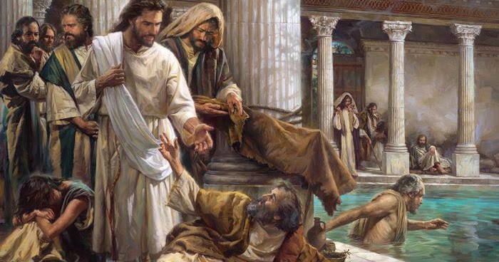 Znajdował się tam pewien człowiek, który już od lat trzydziestu ośmiu cierpiał na swoją chorobę. Gdy Jezus ujrzał go leżącego i poznał, że czeka już długi czas, rzekł do niego: „Czy chcesz stać się zdrowym?”