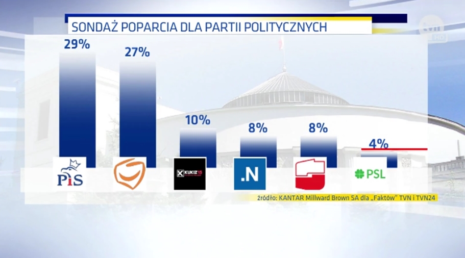 Wyniki najnowszego sondażu Kantar Millward Brown dla “Faktów” TVN i TVN24.
