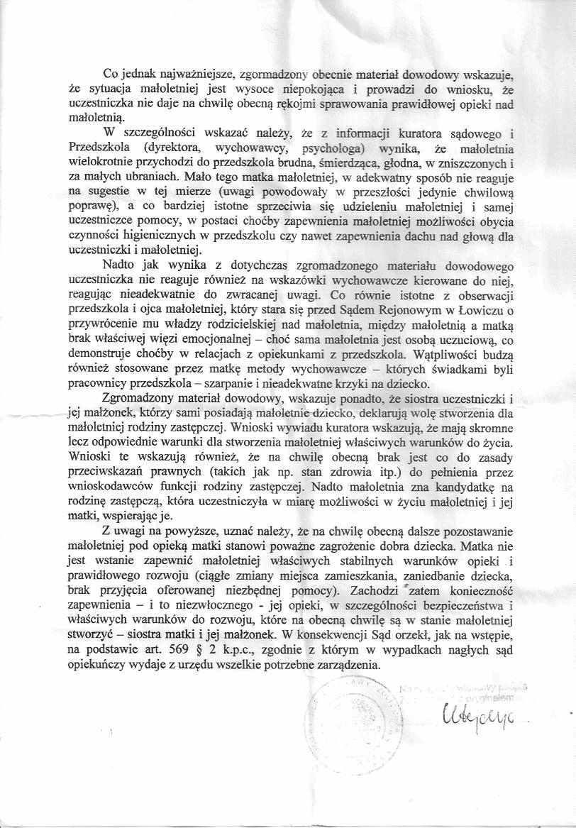 Dla wymiaru niesprawiedliwości okazało się to wystarczające do przekazania opieki nad dzieckiem siostrze jej matki, gdy pomiędzy paniami ma miejsce konflikt o spadek po ich matce.