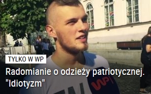 Lewizna i intelektualna mielizna – tak zazwyczaj odbieram materiały zamieszczane na portalu WP.pl. Tym razem moją uwagę przykuło jedno zdjęcie (powyżej) i tytuł : Radomianie o odzieży patriotycznej. „Idiotyzm”.
