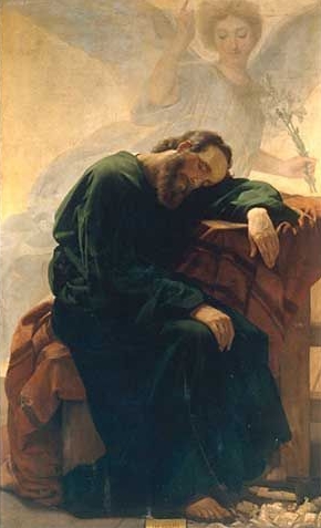 Gdy powziął tę myśl, oto anioł Pański ukazał mu się we śnie i rzekł: „Józefie, synu Dawida, nie bój się wziąć do siebie Maryi, twej Małżonki; albowiem z Ducha Świętego jest to, co się w Niej poczęło. Porodzi Syna, któremu nadasz imię Jezus, On bowiem zbawi swój lud od jego grzechów”.