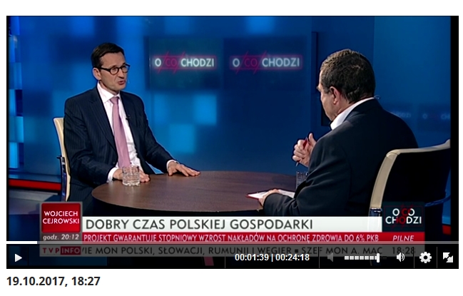 Wicepremier Morawiecki, gość Bronisława Wildsteina w programie „O co chodzi” TVP INFO, odnosząc się do sytuacji w polskiej gospodarce zwrócił uwagę na „błędny model rozwoju gospodarczego”, który spowodował w okresie transformacji utratę przez Polskę rynków w ciągu 12 m-cy.