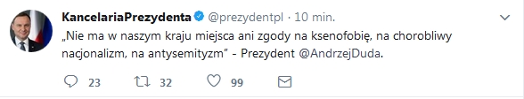 Na razie odezwał się na Twitterze prezydent Duda