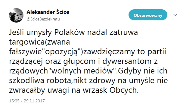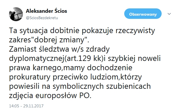 Sprawę skomentował na Twiterze Aleksander Ścios