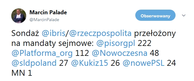 Z obliczeń Marcina Palade wynika, że PiS utracił zdolność do samodzielnego rządzenia.