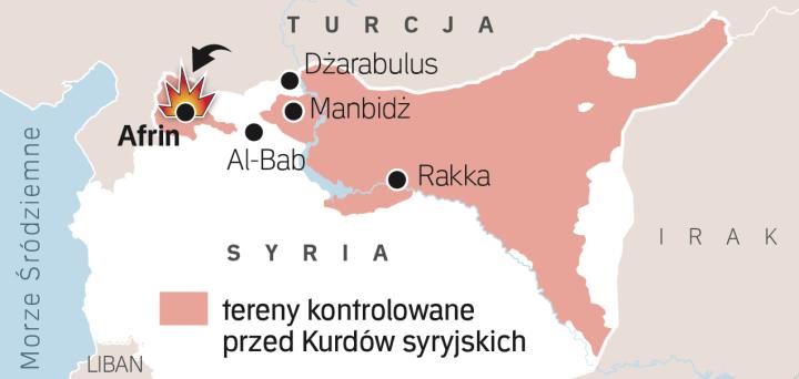 W dniu 20 I 2018 r. lotnictwo i artyleria turecka zaatakowały kanton Afrin położony w północnej Syrii. Rząd syryjski Baszara el Asada utracił go w 2012 r. na rzecz rebeliantów, a w styczniu 2014 r. Kurdowie ogłosili powstanie Kurdyjskiego Kantonu Afrin. Powierzchnie ma małą i populację niewielką. W 2005 r. teren ten zamieszkiwało 172 tys. ludzi, w tym w miasteczku Afrin (nazwa pochodzi od nazwy rzeki)- 36 tys. Większość – 75% stanowią Kurdowie.