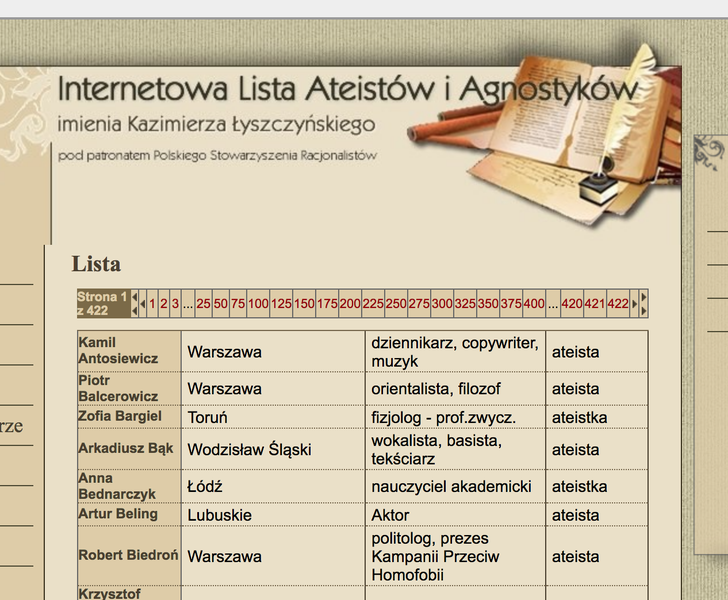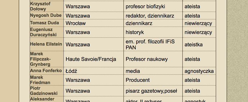 No cóż, takie nadeszły czasy, że radiem katolickim zamiast księdza kieruje dziennikarz demonstracyjnie wpisujący się na listę niewierzących. Niewielkim pocieszeniem pozostaje fakt, że znalazł się tam w ciekawym towarzystwie: obok Roberta Biedronia, Piotra Gadzinowskiego, Anny Grodzkiej, Romana Kotlińskiego czy Joanny Senyszyn.