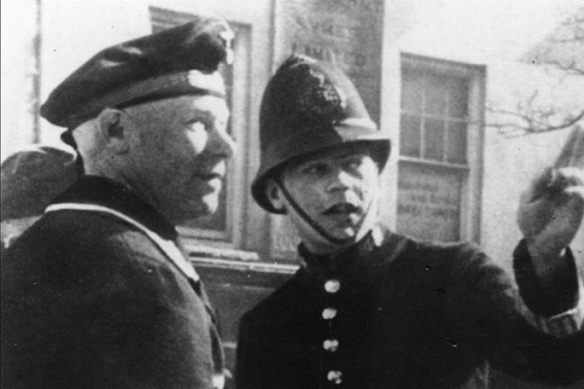 Przyjazna pogawędka między angielskim policjantem i niemieckimi żołnierzami, Jersey, 2 Wojna Światowa