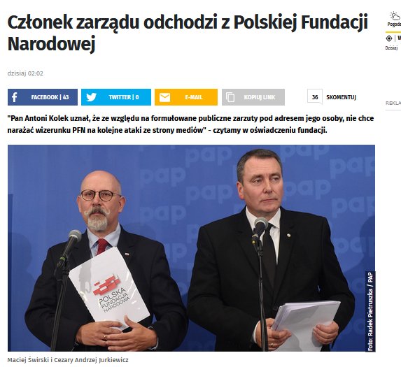 Nieporozumienie w Polskiej Fundacji Narodowej