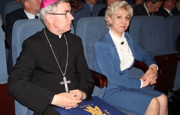 II Krajowy Kongres Akcji Katolickiej, Kraków 17-20 września 2015 r. Prezes Akcji Katolickiej Halina Szydełko obok Abp. Jana Wątroby
