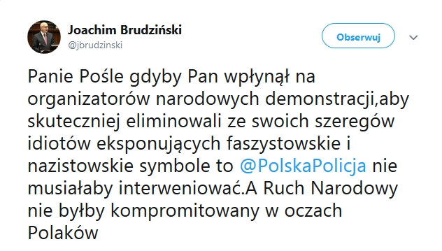 Joachim Brudziński minister MSWiA napisał na Twitterze