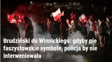 Brudziński udaje głupiego i ślepego. Kłamie w sprawie “eksponowania faszystowskich i nazistowskich symboli”, a zapytany konkretnie, które to symbole, nie widzi pytania. Ale przecież pacyfikacja narodowców przez policję była już realna, a nie zmyślona.
