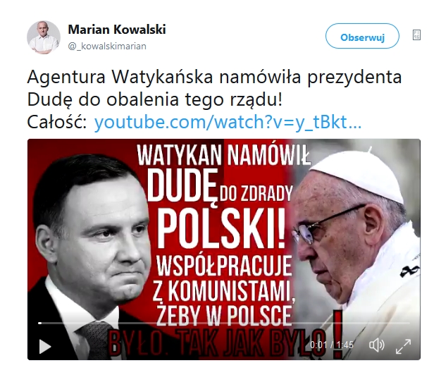 Znając dotychczasowe “przyjaźnie” Mariana Kowalskiego tak właśnie sądziłem, że w pewnym momencie skoczy sobie do gardeł z “najprawdziwszym z najprawdziwszych przyjaciół”, co go w biedzie nigdy nie zostawił. Choć przyznaję, nie wiedziałem, że nastąpi to tak szybko :) A, że z sekty tak po prostu się nie wychodzi, to sekta swoje robi i zaczyna wyliczać apanaże, jakie Kowalski od nich pobierał. Obrzydliwy chwyt, tym bardziej, iż bez Kowalskiego nie byłoby mowy o żadnym rozgłosie telewizji IPP. Jestem pewien, że za chwilę zaczną i Kowalskiego wyzywać od ruskich agentów, durni i zdrajców, tak samo, jak każdego, kto choć w 1% ma inny pogląd na świat. Tylko, że tego już na pewno nikt nie zobaczy :)