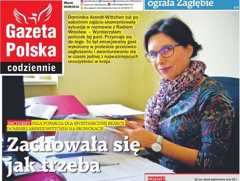 Kiedy pani Dominika Arendt- Wittchen spoliczkowała znaną prowokatorkę KOD, część „prawej” strony wpadła w zachwyt. Gazeta Polska Codziennie użyła nawet słów nawiązujących do postawy narodowej bohaterki Inki: „Zachowała się jak trzeba”