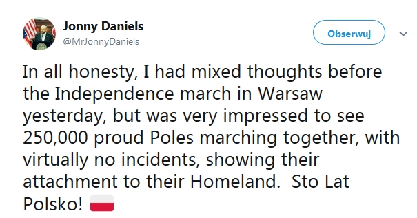 W The Wall Street Journal ukazał się artykuł szkalujący Polaków świętujących setną rocznicę odzyskania niepodległości. Nie zabrakło w nim zacytowanej opinii Jonny’ego Danielsa, który powiedział: