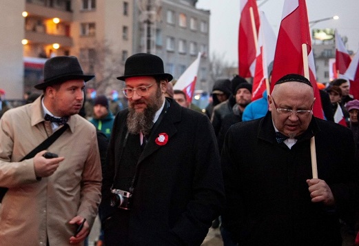 W marszu rządowym dało się zauważyć również Żydów, którzy szli w kolumnie sympatyków PiS.