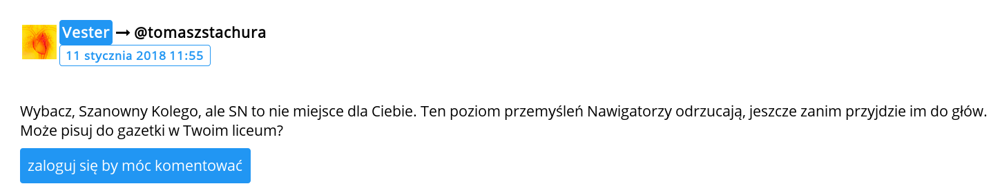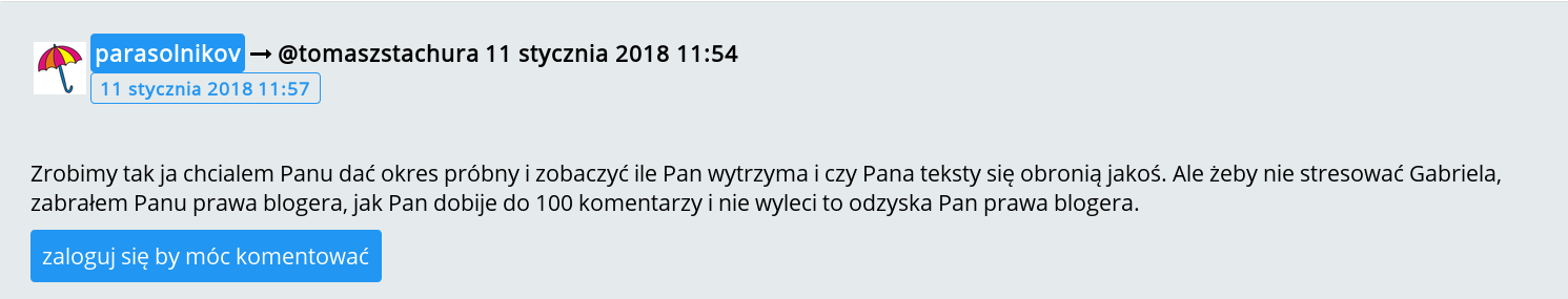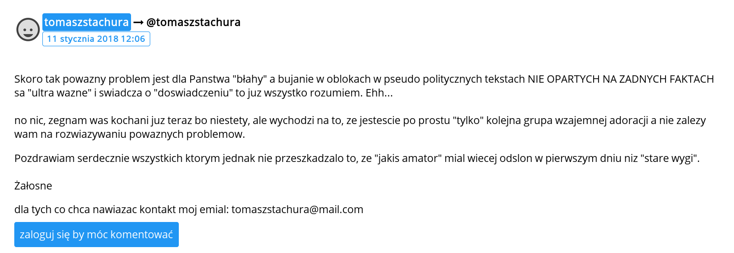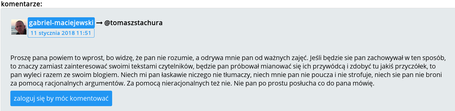 Zrobiłem to ze świadomością, że jego treść nie jest przez Szanownych Panów akceptowana.