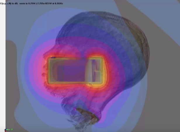 Rozkład natężenia pola od telefonu GSM u 6-latka (modelowanie komputerowe) [3].