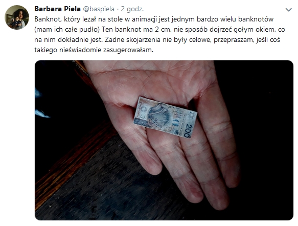 Zarzut dotyczy malutkiego banknotu, który pokazano w programie „Minęła20”. Na filmie widać Hannę Gronkiewicz-Waltz zabierającą pieniądze ze zbiórki WOŚP. Na banknocie 200 zł zamiast trójkąta widać gwiazdę Dawida.