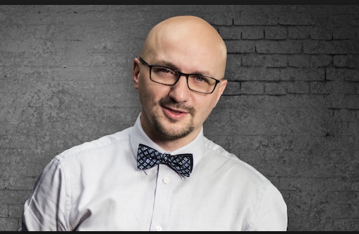 O. Kramer o sobie: “Popatrzcie na tę niewinną twarz. Czy te oczy mogą kłamać? Czy ten śmieszny koleś może chcieć życzyć komuś źle? W końcu jak nie spełnić życzenia tego wiecznie śmiesznego dzieciaka?”. Fot. Blog autorski/Grzegorz_Kramer