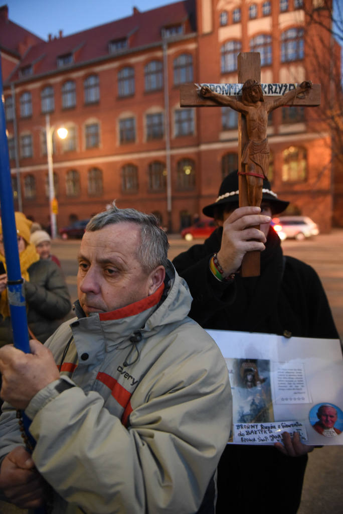 Protest modlitewny przeciw wystawie satanistki, przed gmachem Centrum Sztuki Współczesnej w Toruniu w piątek 8 marca 2019 r.
