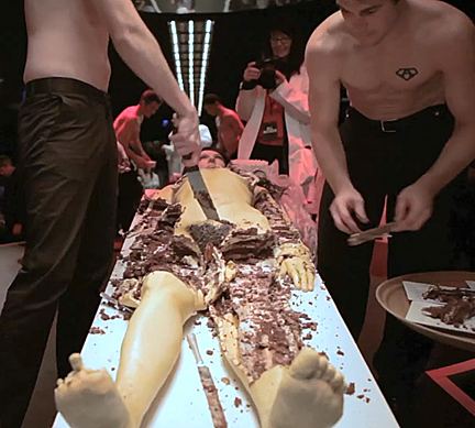 Jedna głupota rodzi drugą: panienki (czyżby Marina?) na wystawie w Toruniu przymierzające się do “ukrzyżowania”