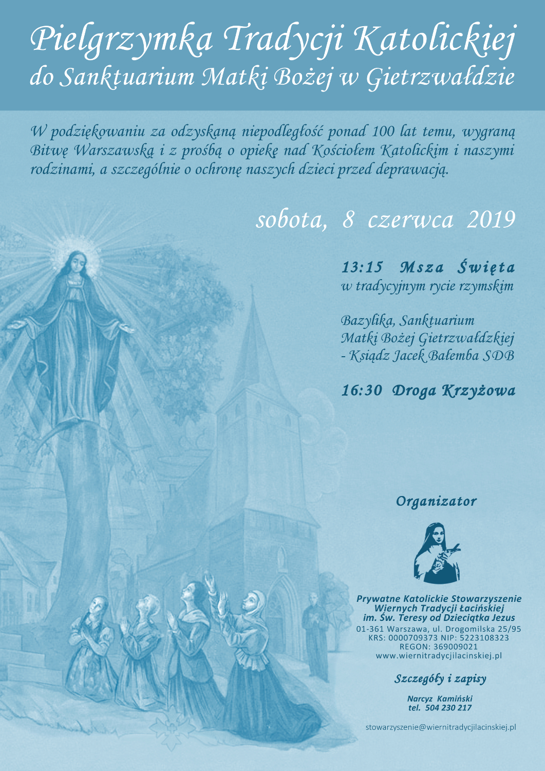 8 czerwca 2019 r. odbędzie się pielgrzymka Wiernych Tradycji Łacińskiej do Sanktuarium Matki Bożej w Gietrzwałdzie, w intencji dziękczynno-błagalnej: