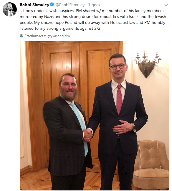 Kolejnym żydem jest osobnik z Chabad Lubawicz, Shmuley Boteach, który dokonał swoistej rekrutacji Morawieckiego na premiera.