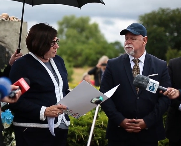 78 rocznica zbrodni w Jedwabnem. Ambasador Azari mówi o zwierzęcym antysemityzmie. Obok stoi Lesław Piszewski.
