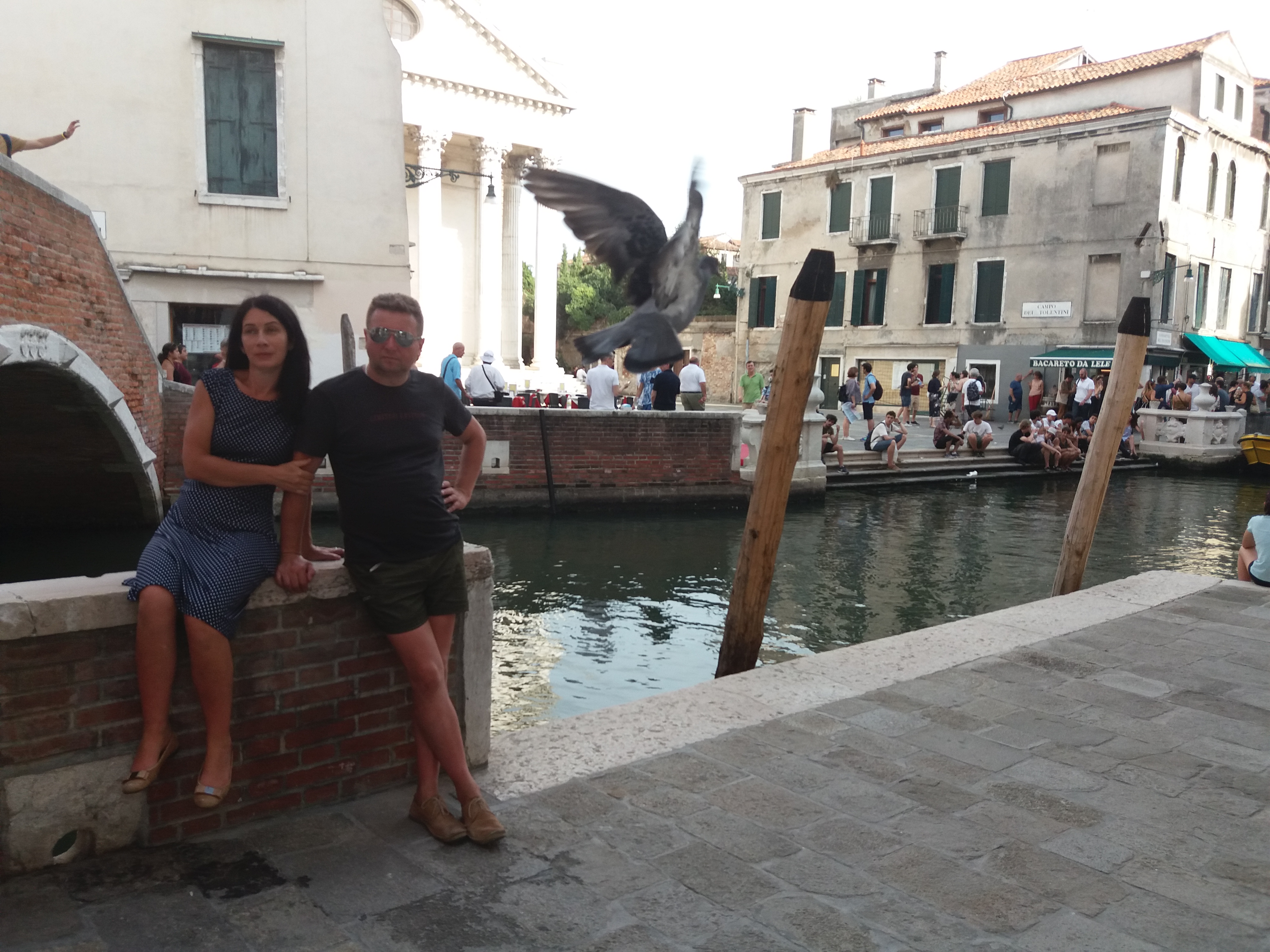 Tak też zrobiliśmy…fajnie szło. Ale do czasu, kiedy pewna, ranna wenecka arystokratka niemal dostając spazmów zagrodziła nam drogę i darła się w niebogłosy coś a’la “non bicykles, non bicykles in Wenecja”…