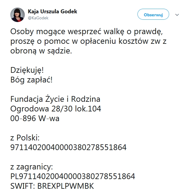 Kaja Godek wystosowała następujący apel na Twitterze: