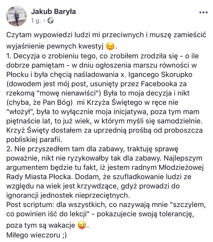 15 letni Jakub Baryła: