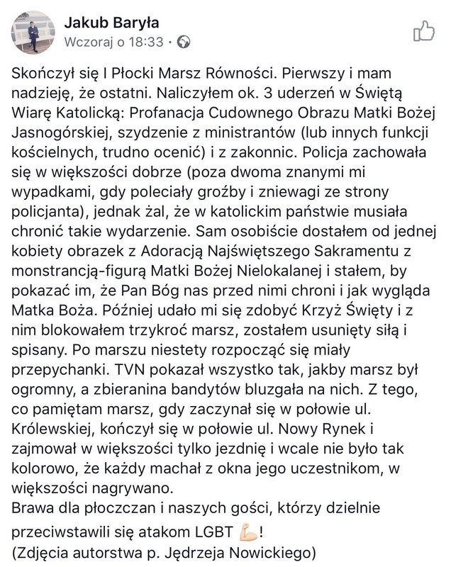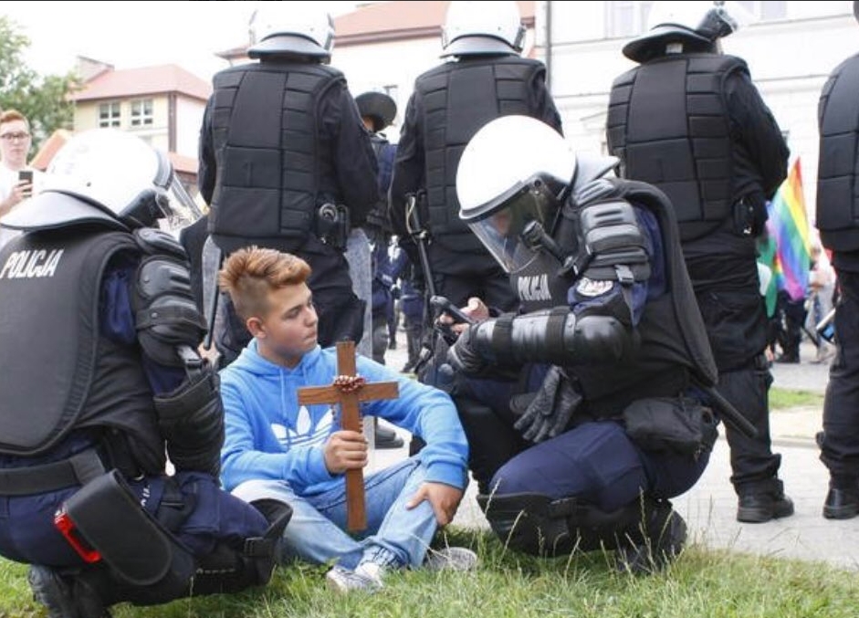 Wygląda więc na to, że polska państwowa policja pod rządami PiS-u jest zatrudniana do ochrony HOMO-ZOMO, czyli marszów zboczeńców, których głównym (zapewne sowicie opłaconym) celem jest zniszczenie autorytetu Kościoła.