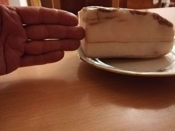 Ja na to, już jak kretyn do kwadratu, że przecież ja kupiłem to sało nie pokątnie, a w najlepszych delikatesach w Grodnie (i to jest prawda), a skoro zapytała o taką żywność, to odpowiedziałem zgodnie z prawdą, że je mam.