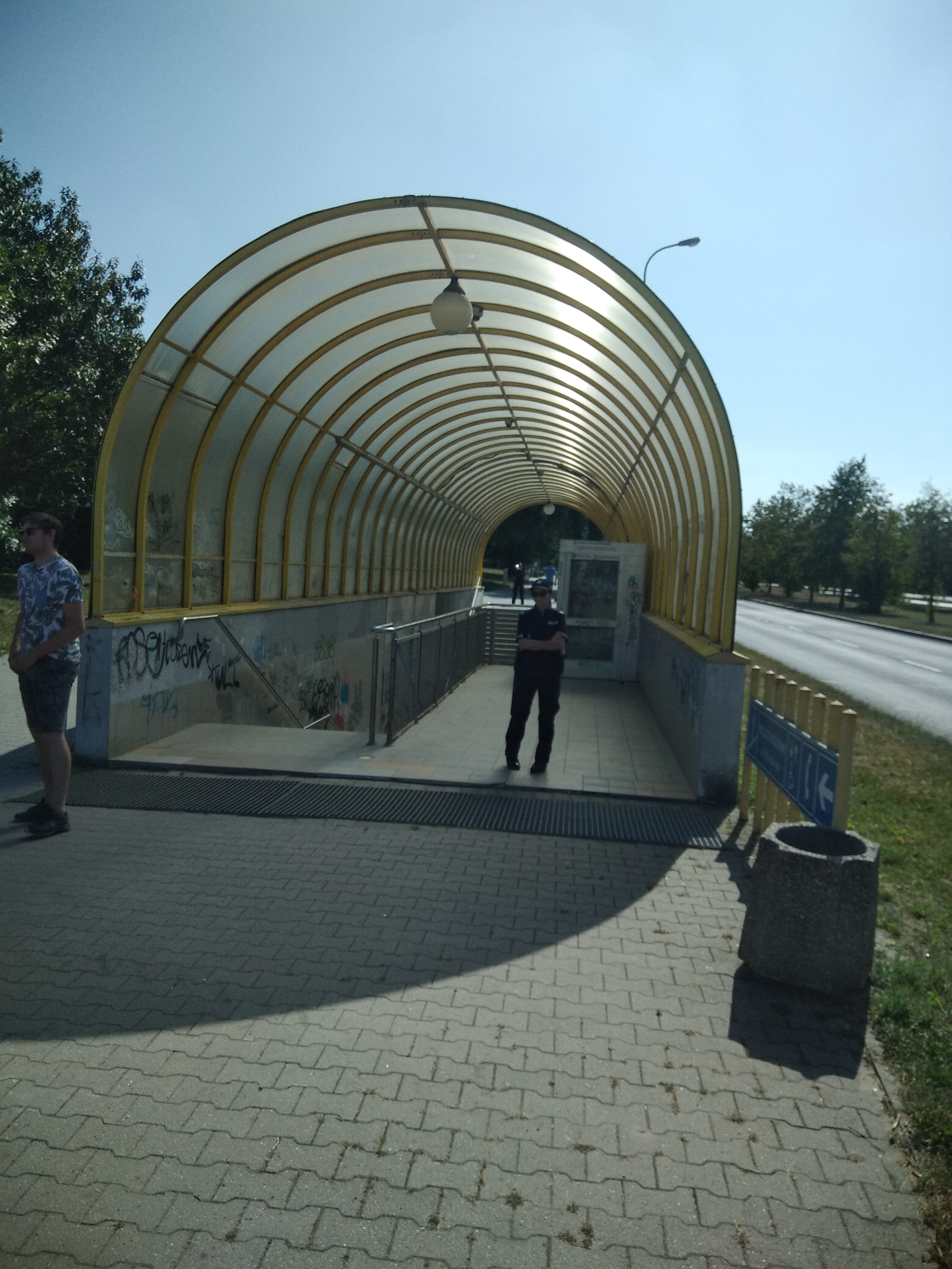 16. Przejście podziemne pod ulicą Piłsudskiego. Policjantki pilnują, by nikt nie mógł z niego skorzystać: