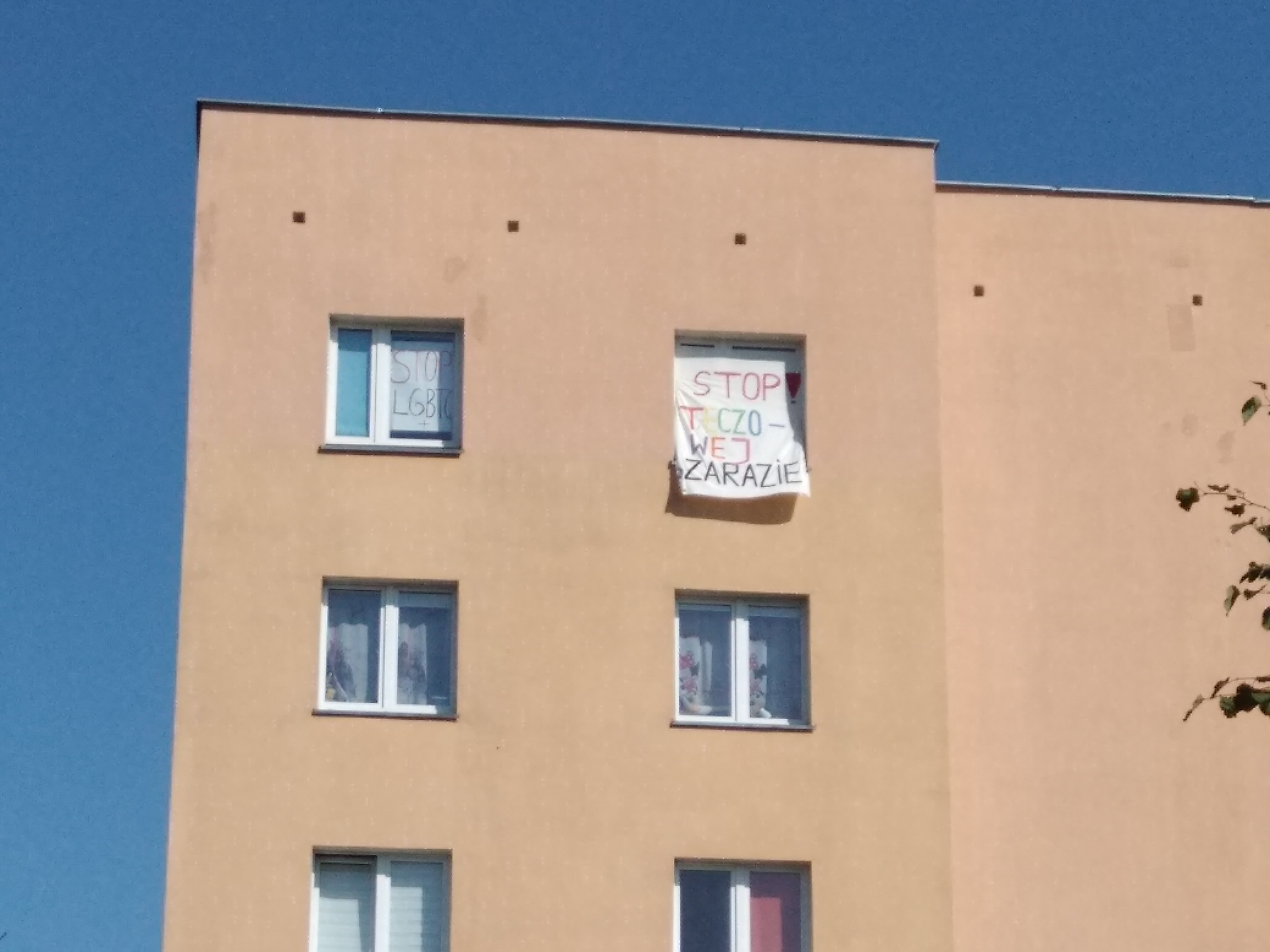 22. Transparent kontrmanifestantów w Parku Kopernika: