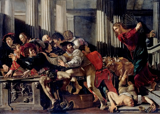 Spójrzmy na obraz. Trudno posądzać Chrystusa o brak miłości do ludzi. Nie ma żadnej sprzeczności z tym, że ukręconym biczem ze sznurków wymierzał słuszne razy i używając przemocy zdemolował ich niecny proceder.