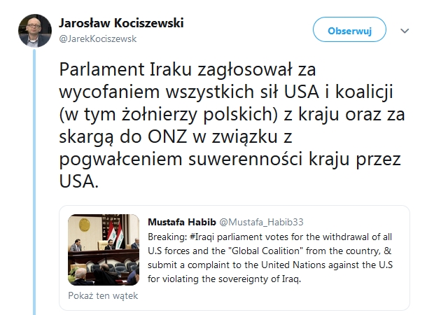 Polityka USA będzie mieć swoje konsekwencje. Jeżeli nastąpi dalsza eskalacja, to zyska Rosja w Europie (może pochłonąć Białoruś), zyska również ISIS (zakończenie operacji OIR-Operation Inherent Resolve) wymierzonej przeciwko ISIS. Przypominam, że wbrew temu, co mówił po ostatnim szczycie NATO minister Błaszczak, Polska nie zyskała na bezpieczeństwie w naszym regionie – USA nie przebazowały swoich jednostek do krajów Bałtyckich.