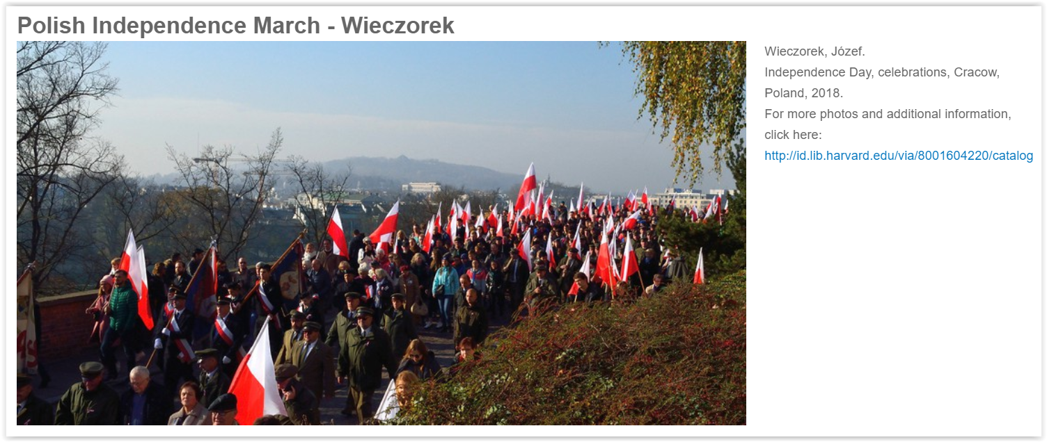 W galerii [ Independence March (Poland) Collection at Harvard Library, Wieczorek, Józef. Independence Day, celebrations, Cracow, Poland, 2018.https://aeod.library.harvard.edu/media-gallery/lightbox/1468201/3812684