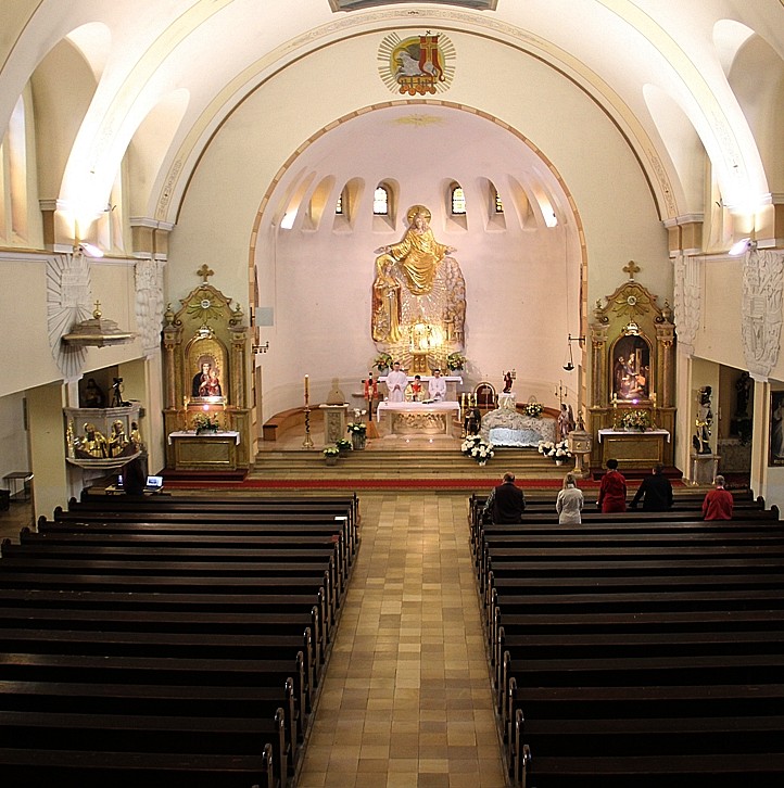 Poniedziałek Wielkanocny 2020 r. – przepisowe 5 osób podczas mszy św. w kościele św. Katarzyny Aleksandryjskiej, Dobrzeń Wlk. k. Opola