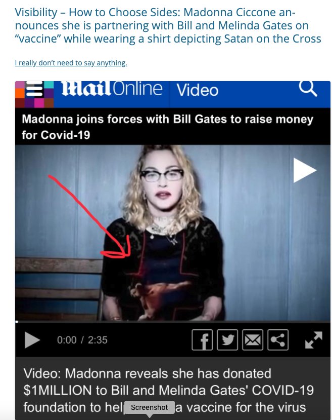 Madonna, z wizerunkiem diabła na krzyżu na swej koszulce, oznajmia o wsparciu szczepionkowej akcji Gates’ów i wpłacie 1 mln dol. na ich fundację